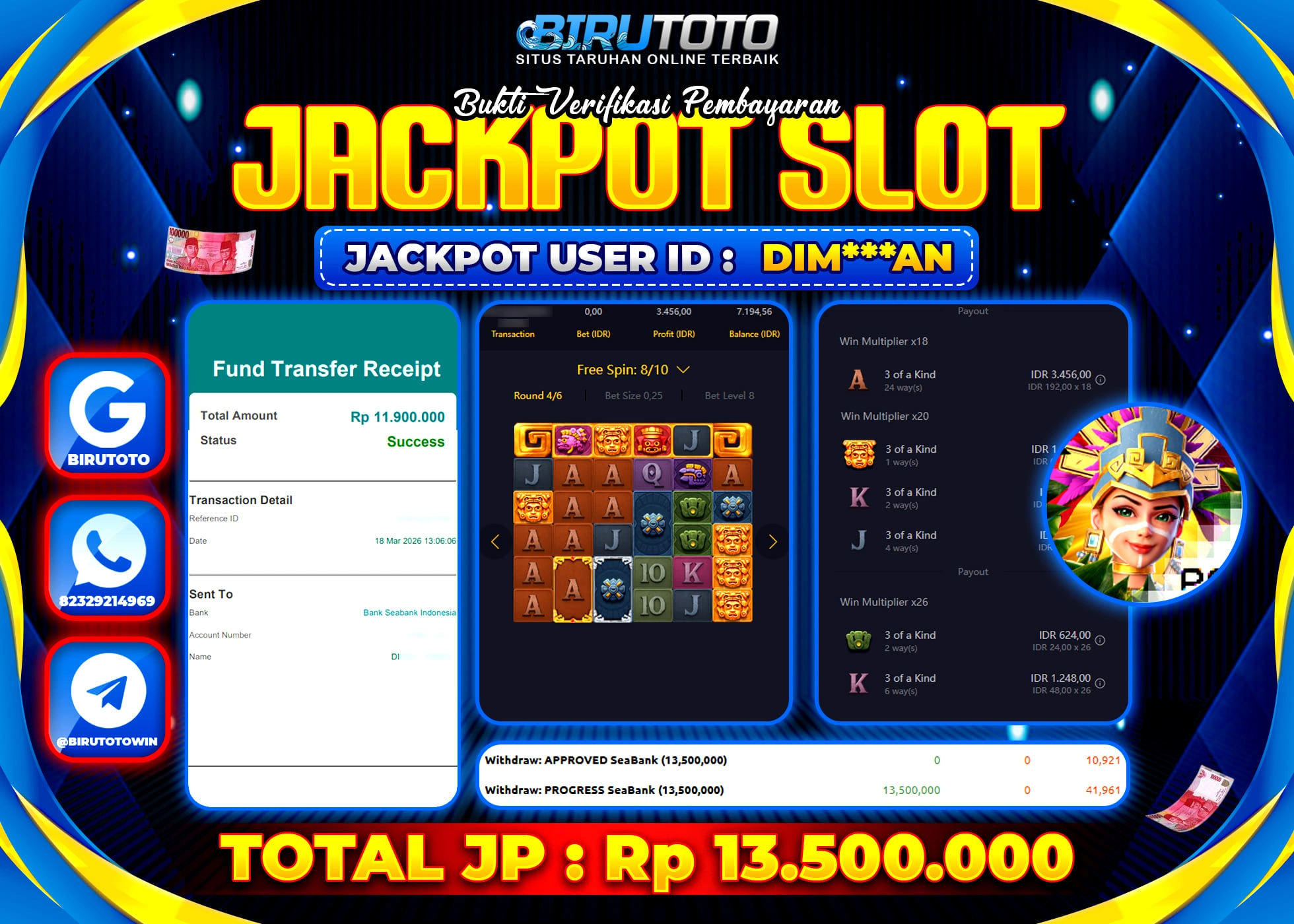Selamat Kepada Member BIRUTOTO DIM***AN Telah Jackpot Di SLOT TREASURES OF AZTEC