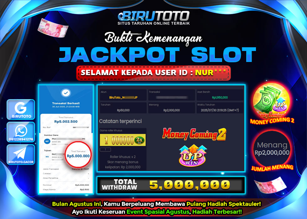 BIRUTOTO JACKPOT SLOT MONEY COMING 2 Rp.5.000.000 LUNAS