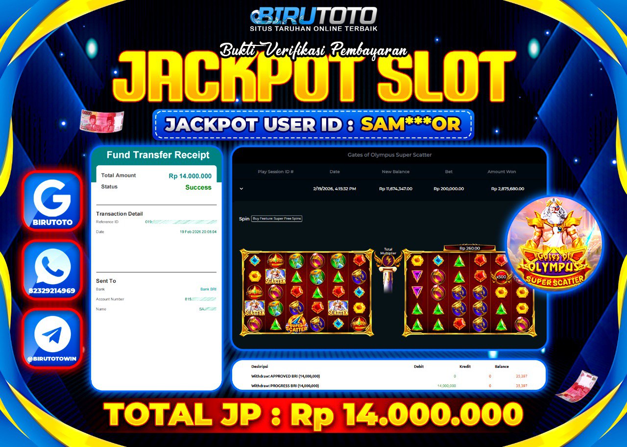 BIRUTOTO JACKPOT SLOT GATES OF OLYMPUS SUPER SCATTER Rp.14.000.000 LUNAS