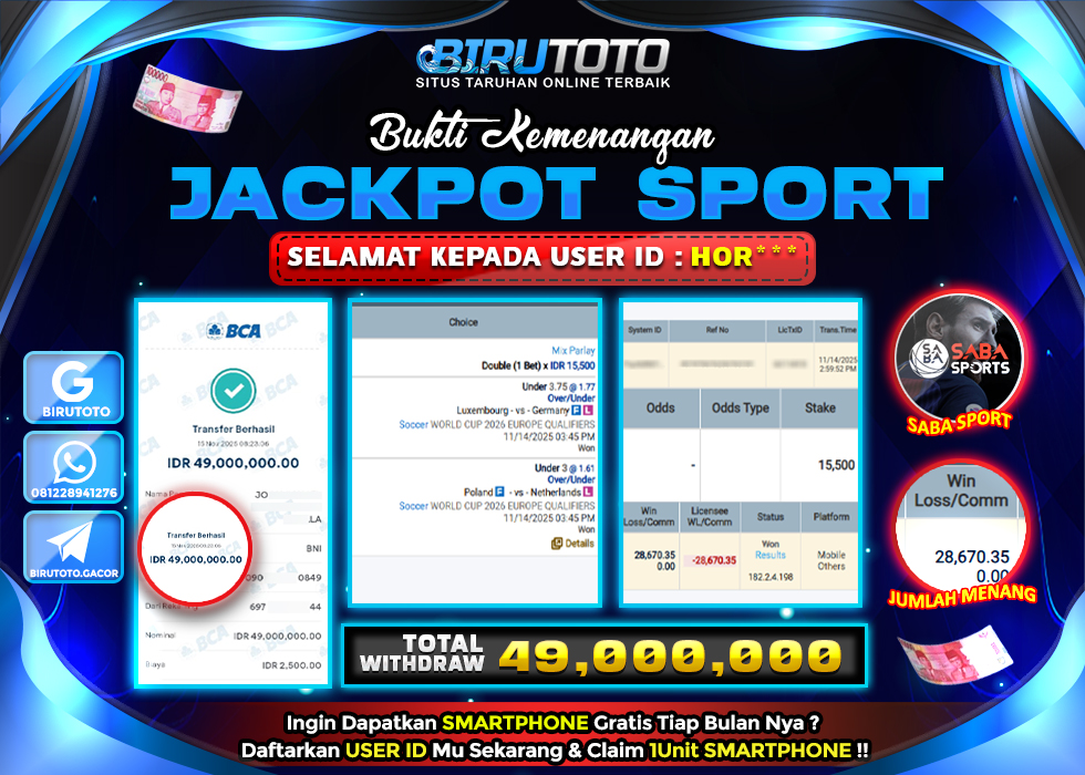 BIRUTOTO JACKPOT SABA SPORT MIX PARLAY Rp.49.000.000 LUNAS