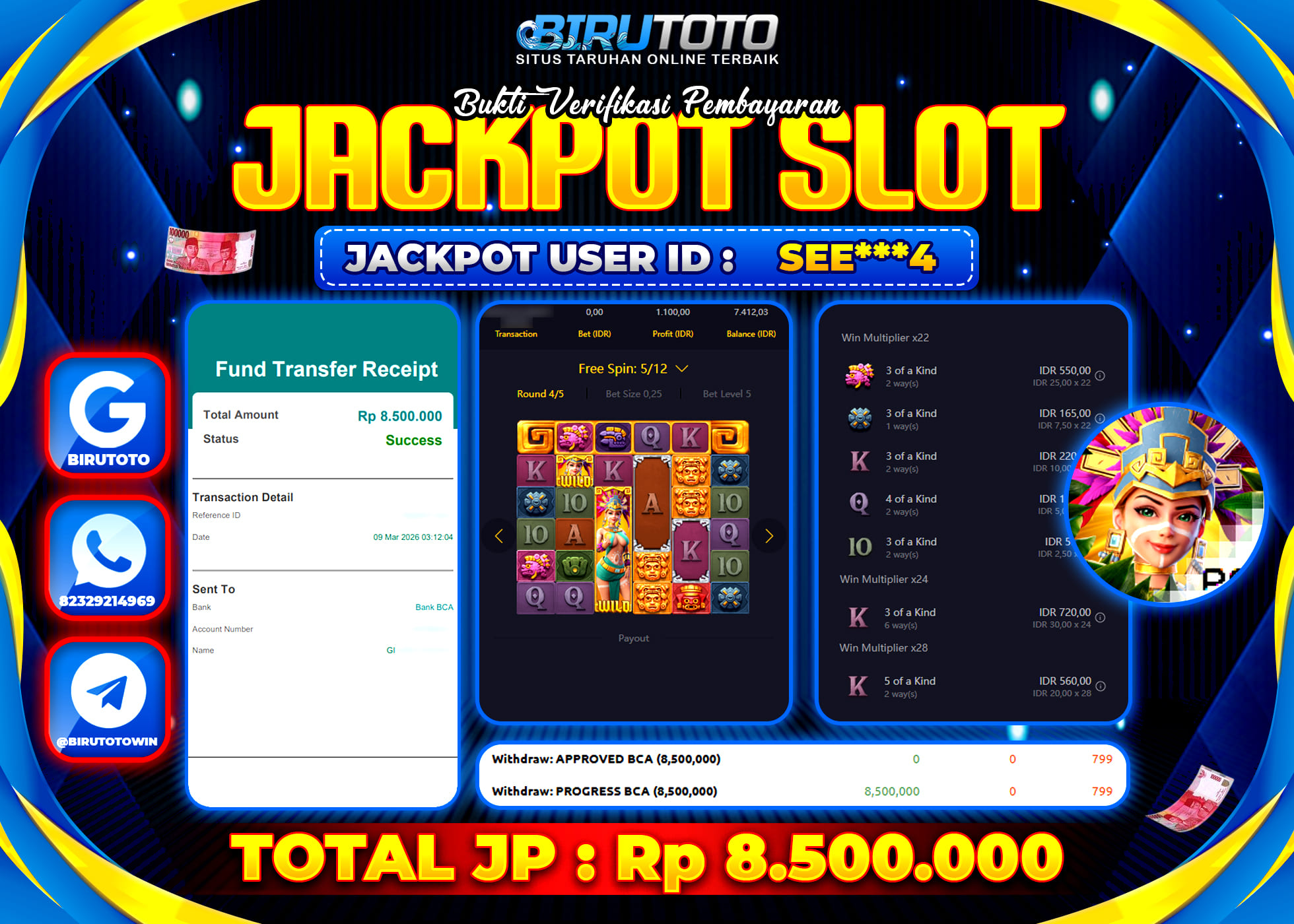BIRUTOTO JACKPOT SLOT TREASURES OF AZTEC Rp.8.500.000 LUNAS