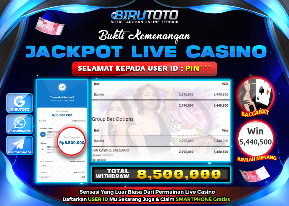 Selamat Kepada Member BIRUTOTO PI**** Telah Jackpot Di LIVE CASINO BACCARAT