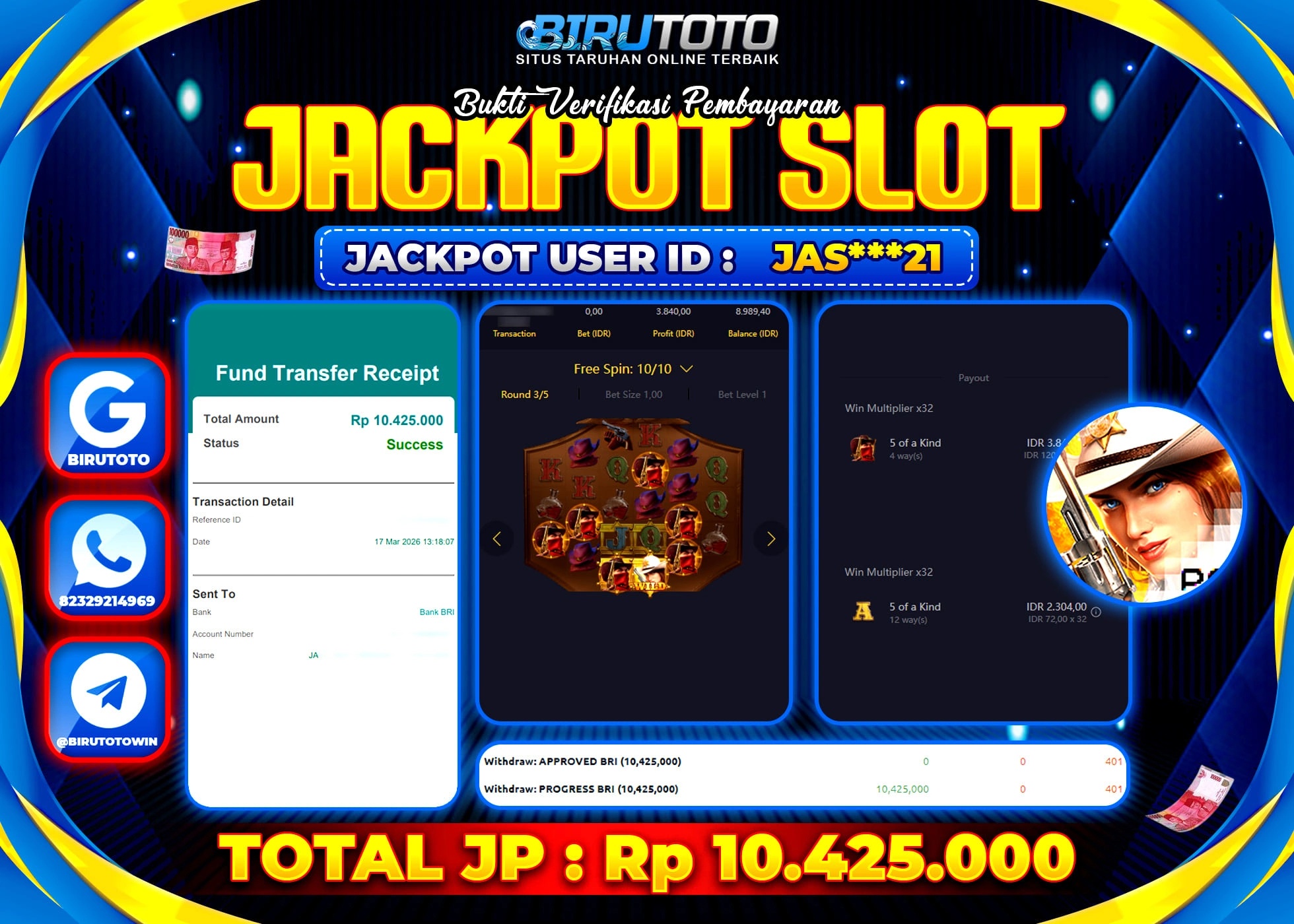 Selamat Kepada Member BIRUTOTO JAS***21 Telah Jackpot Di SLOT WILD BOUNTY SHOWDOWN