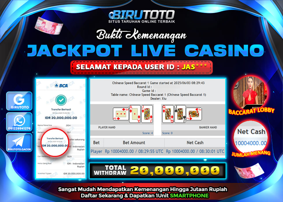 BIRUTOTO JACKPOT LIVE CASINO BACCARAT Rp.20.000.000 LUNAS