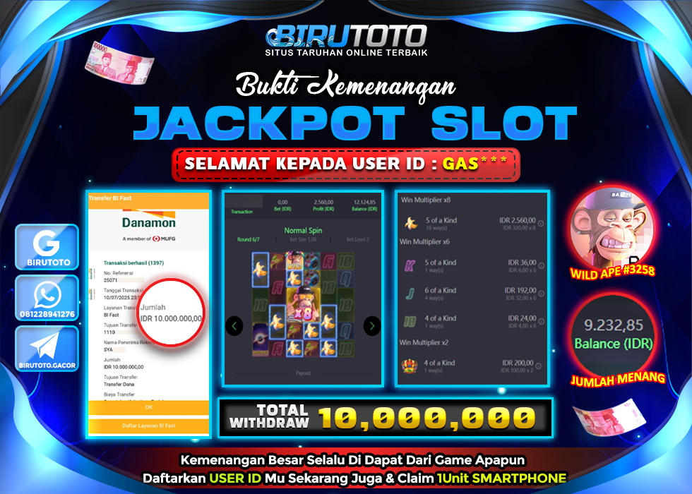 BIRUTOTO JACKPOT SLOT WILD APE Rp.10.000.000 LUNAS