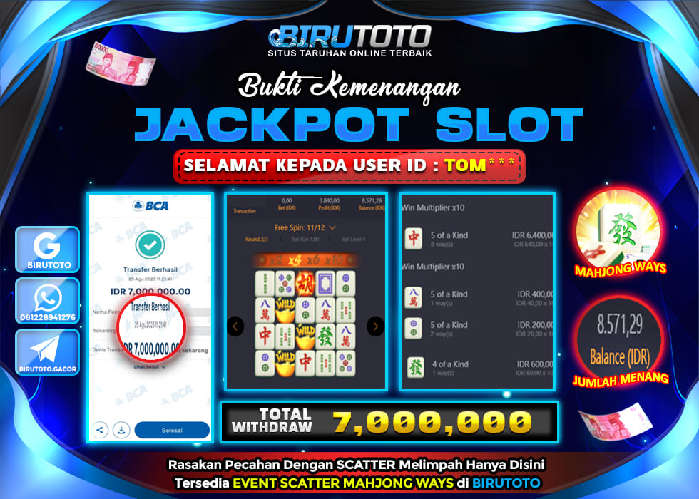 BIRUTOTO JACKPOT SLOT MAHJONG WAYS Rp.7.000.000 LUNAS