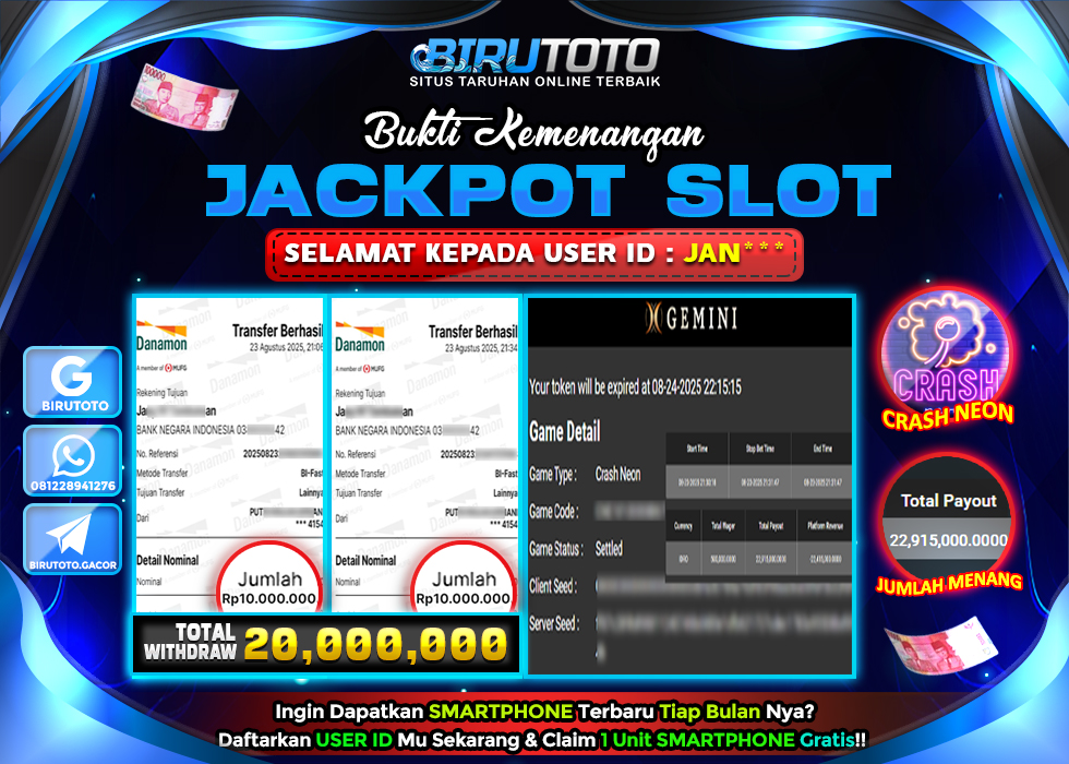 BIRUTOTO JACKPOT SLOT CRASH NEON Rp.20.000.000 LUNAS