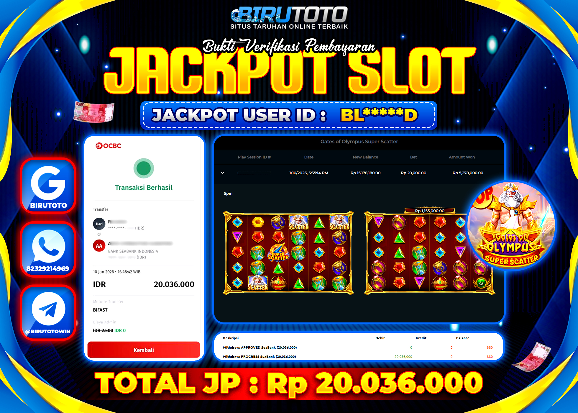 Selamat Kepada Member BIRUTOTO BL**** Telah Jackpot Di SLOT GATES OF OLYMPUS SUPER SCATTER
