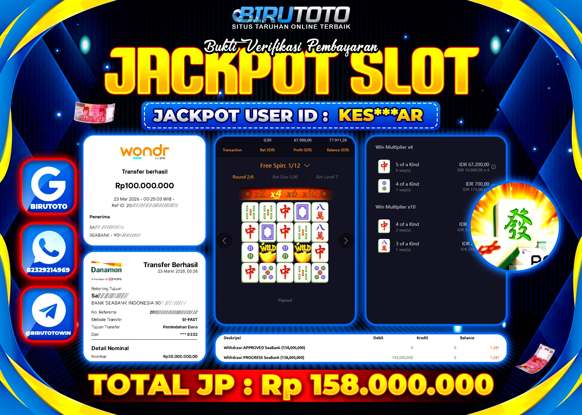BIRUTOTO JACKPOT SLOT MAHJONG WAYS Rp.158.000.000 LUNAS