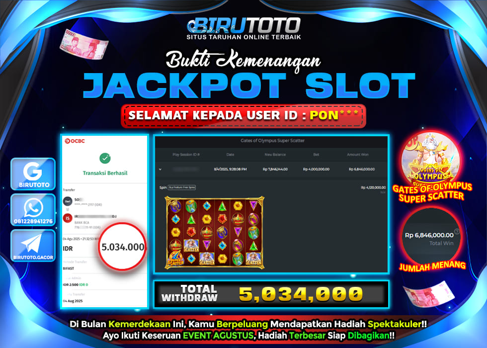 BIRUTOTO JACKPOT SLOT GATES OF OLYMPUS SUPER SCATTER Rp.5.034.000 LUNAS
