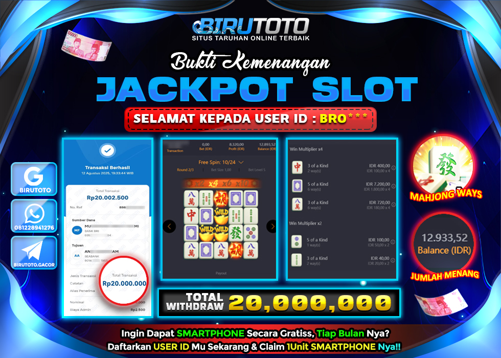 BIRUTOTO JACKPOT SLOT MAHJONG WAYS Rp.20.000.000 LUNAS