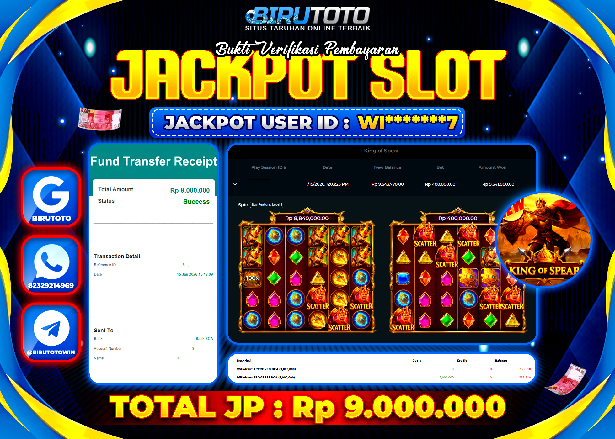 BIRUTOTO JACKPOT SLOT KING OF SPEAR Rp.9.000.000 LUNAS