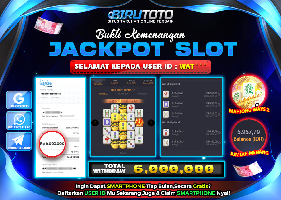 BIRUTOTO JACKPOT SLOT MAHJONG WAYS Rp.6.000.000 LUNAS