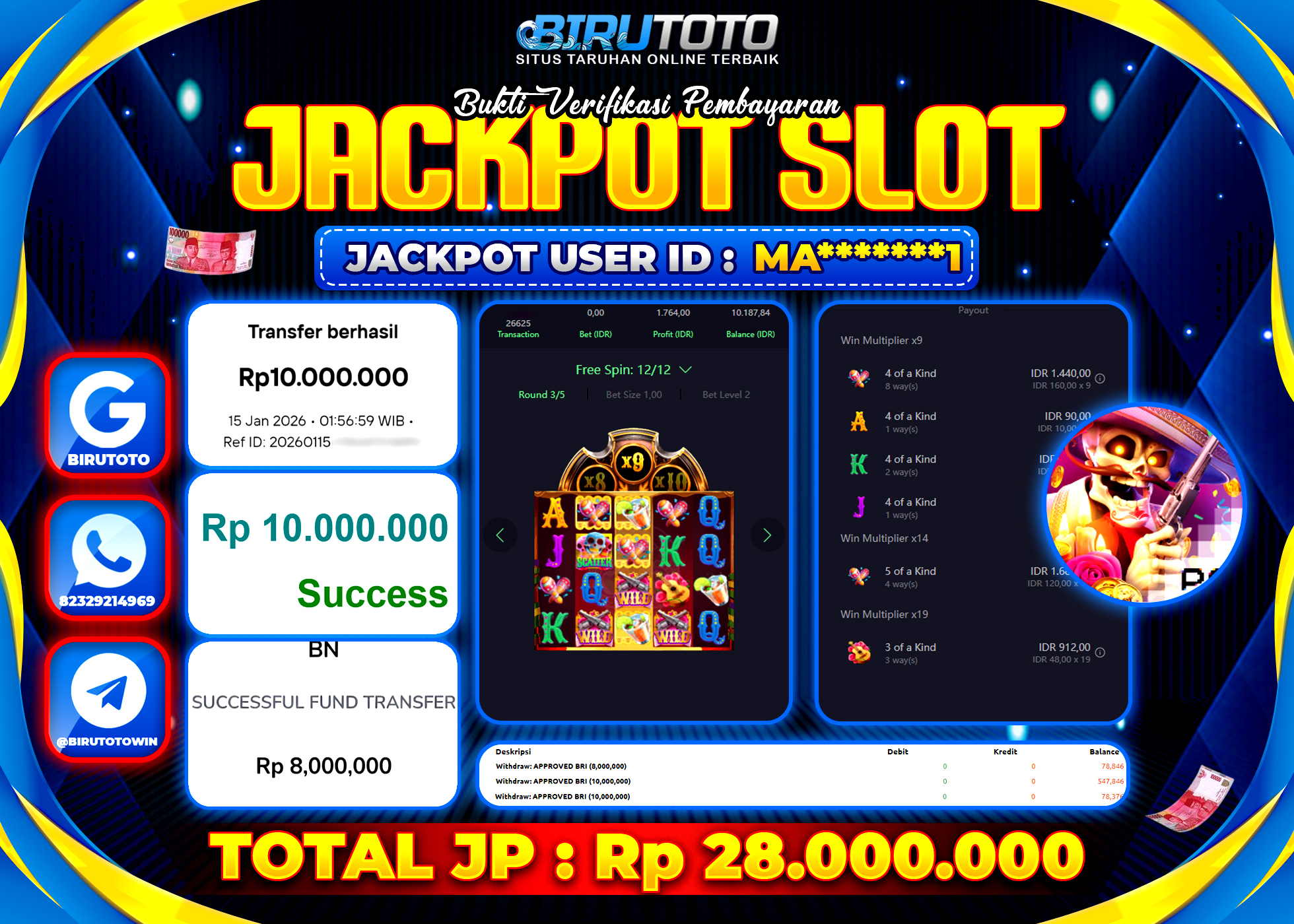 BIRUTOTO JACKPOT BONUS ROLLINGAN Rp.10.000.000 LUNAS