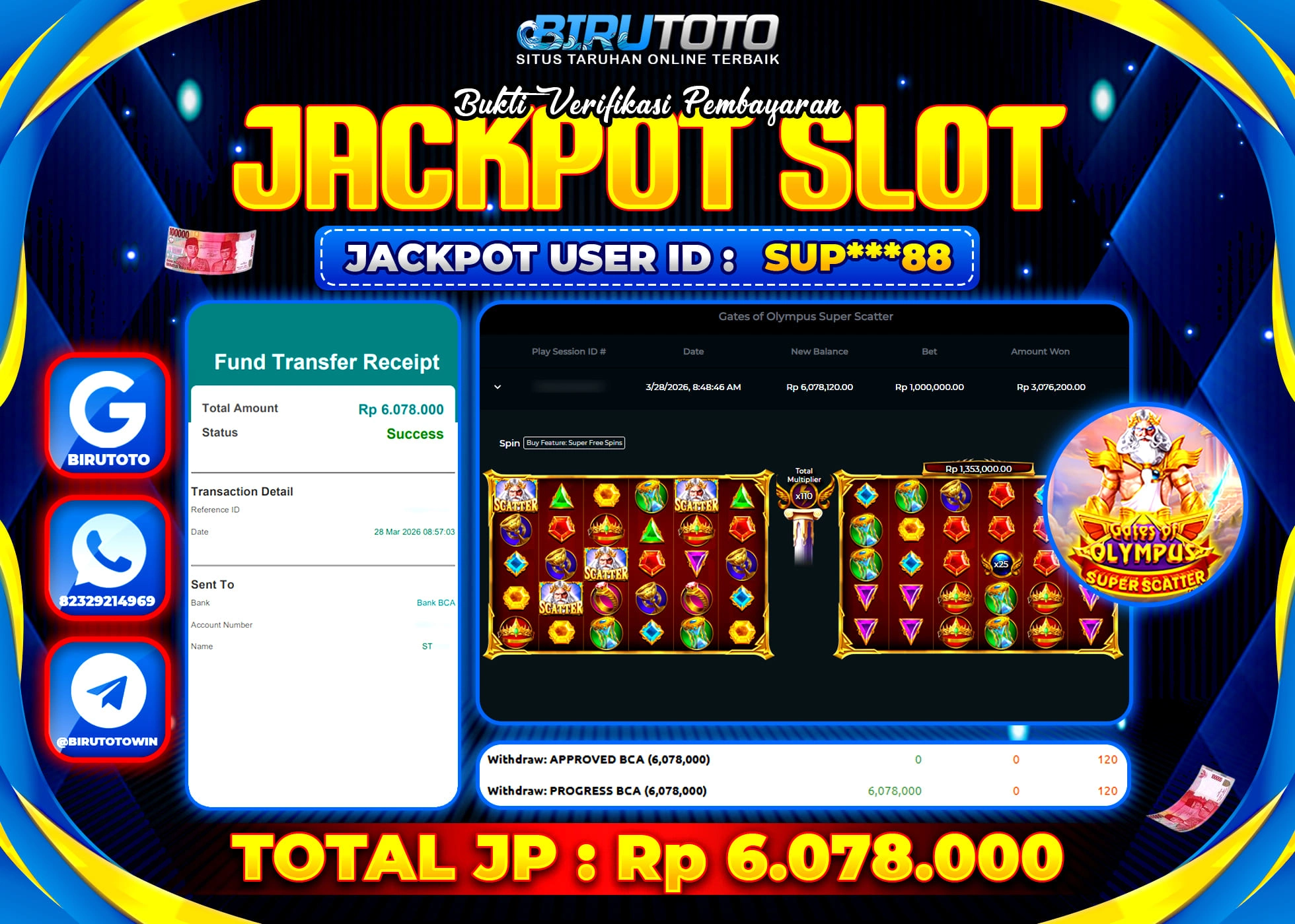 Selamat Kepada Member BIRUTOTO SUP***88 Telah Jackpot Di SLOT GATES OF OLYMPUS SUPER SCATTER