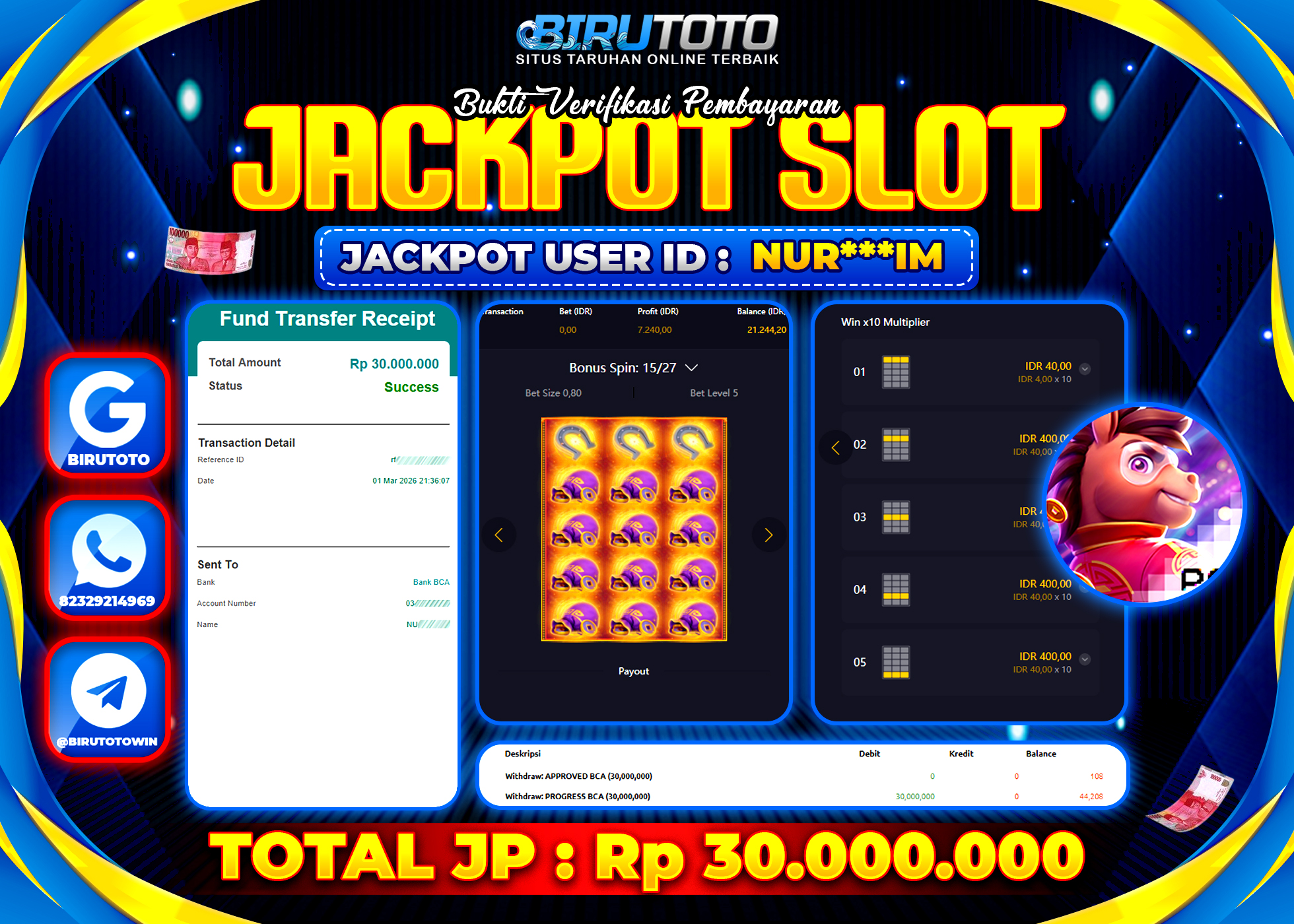 BIRUTOTO JACKPOT SLOT FORTUNE HORSE Rp.30.000.000 LUNAS