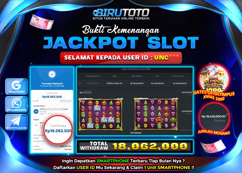 BIRUTOTO JACKPOT SLOT GATES OF OLYMPUS XMAS 1000 Rp.18.062.000 LUNAS