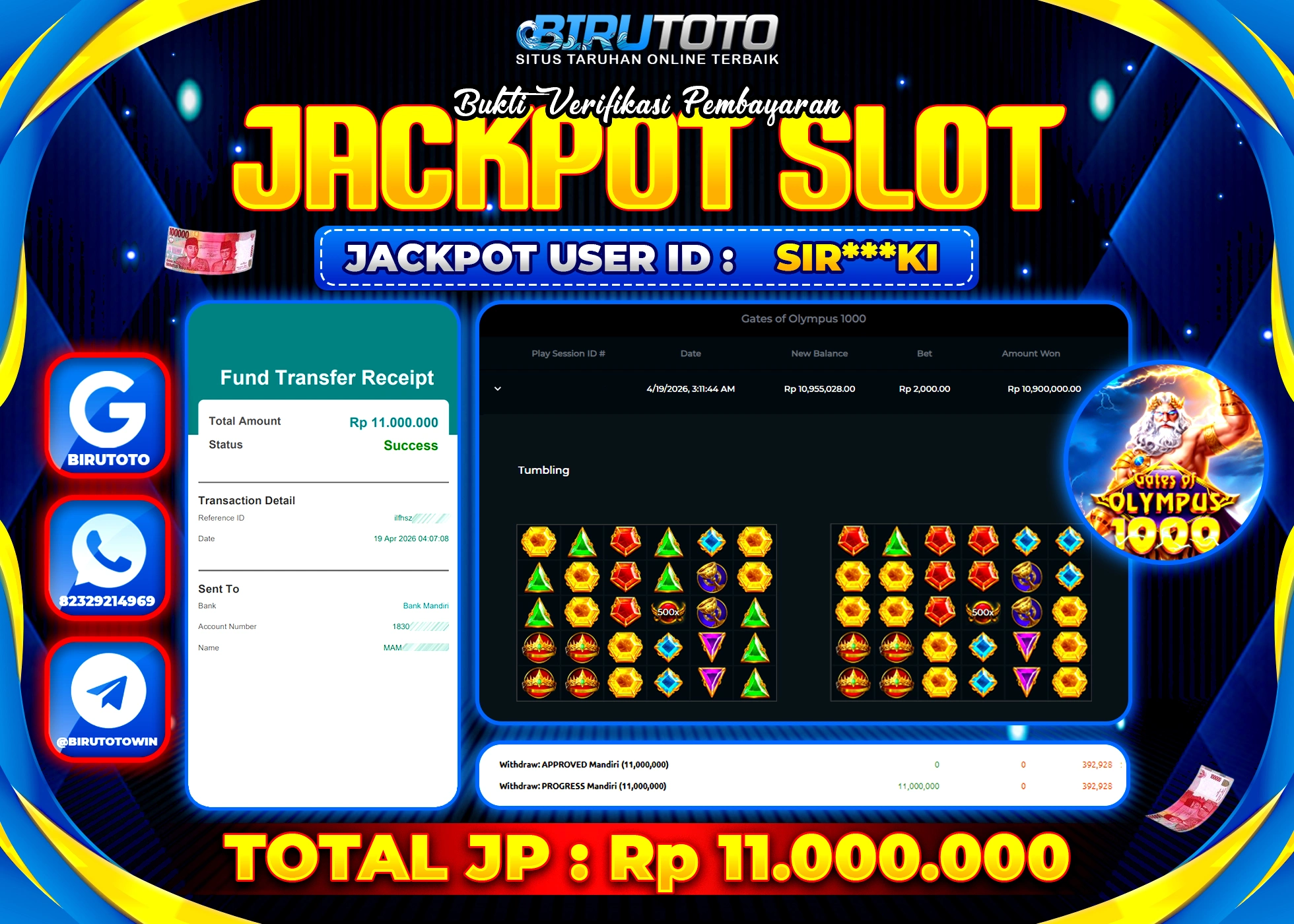 BIRUTOTO JACKPOT SLOT GATES OF OLYMPUS 1000 Rp.11.000.000 LUNAS