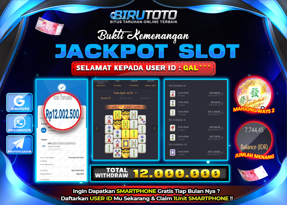 BIRUTOTO JACKPOT SLOT MAHJONG WAYS 2 Rp.12.000.000 LUNAS