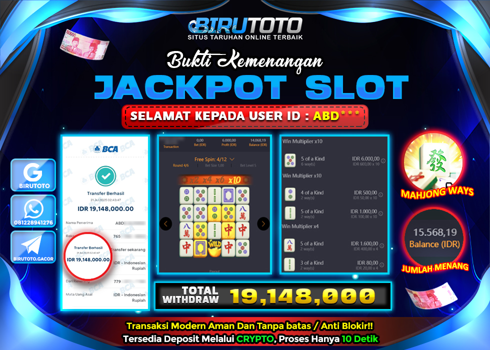 BIRUTOTO JACKPOT SLOT MAHJONG WAYS Rp.19.148.000 LUNAS