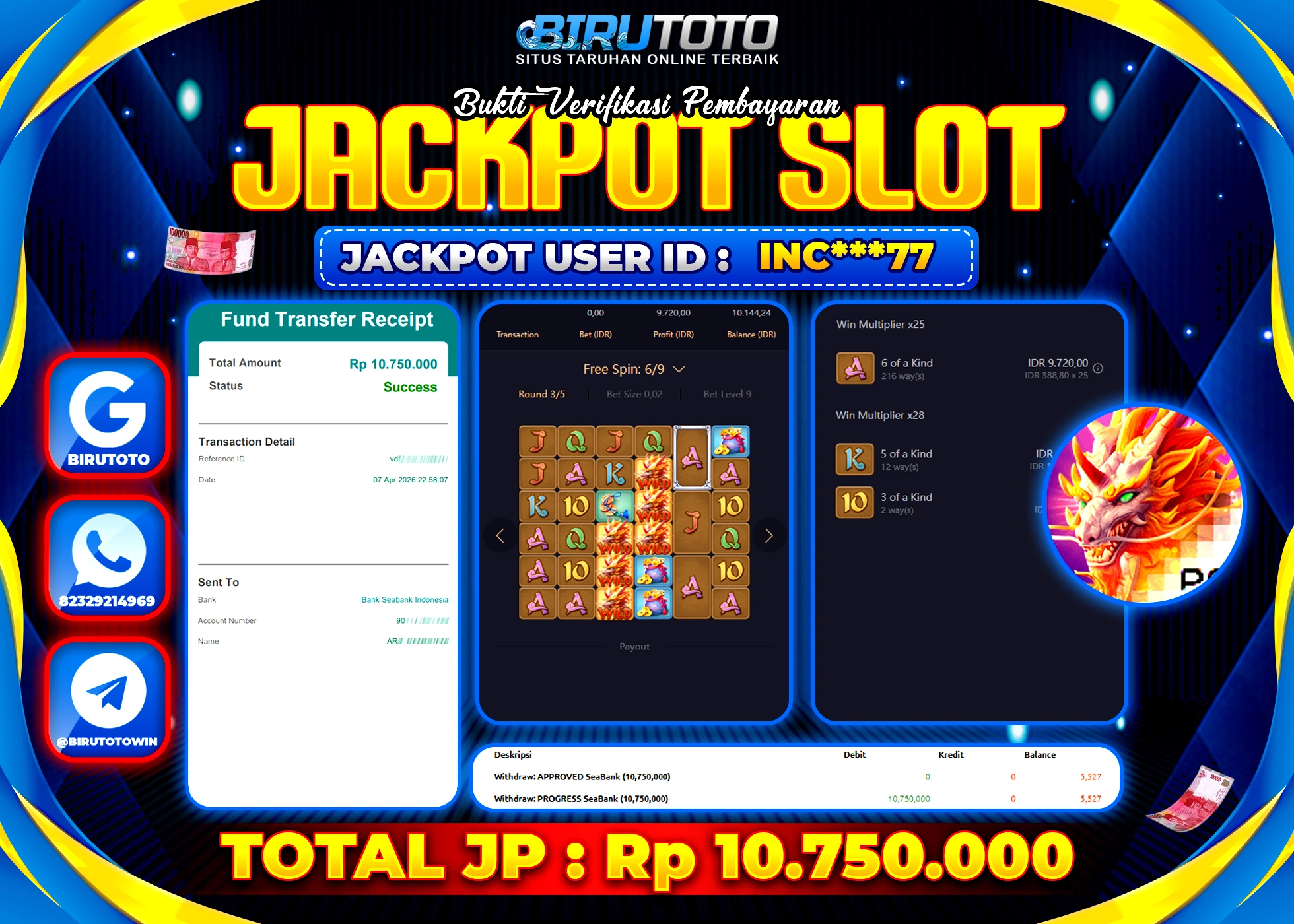BIRUTOTO JACKPOT SLOT WAYS OF THE QILIN Rp.10.750.000 LUNAS