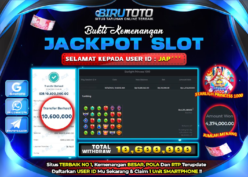 Selamat Kepada Member BIRUTOTO JA**** Telah Jackpot Di SLOT STARLIGHT PRINCESS 1000