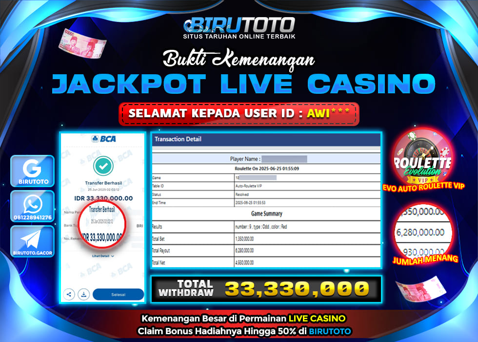 BIRUTOTO JACKPOT LIVE CASINO ROULETTE Rp.33.330.000 LUNAS