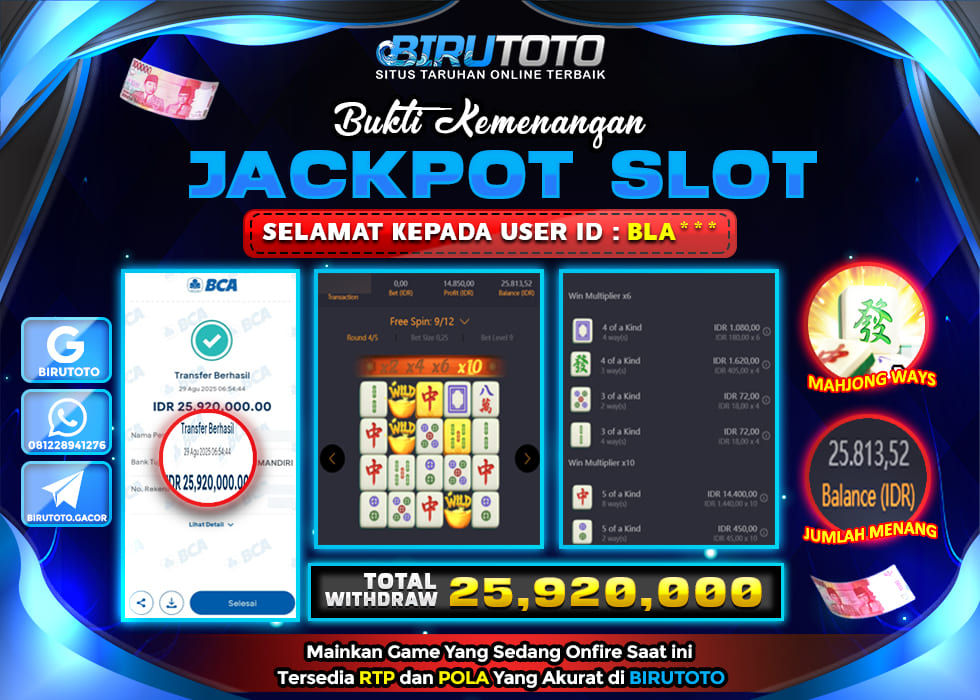 BIRUTOTO JACKPOT SLOT MAHJONG WAYS Rp.25.920.000 LUNAS