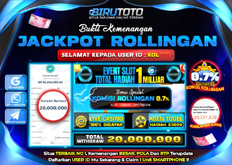 BIRUTOTO JACKPOT BONUS ROLLINGAN Rp.20.000.000 LUNAS