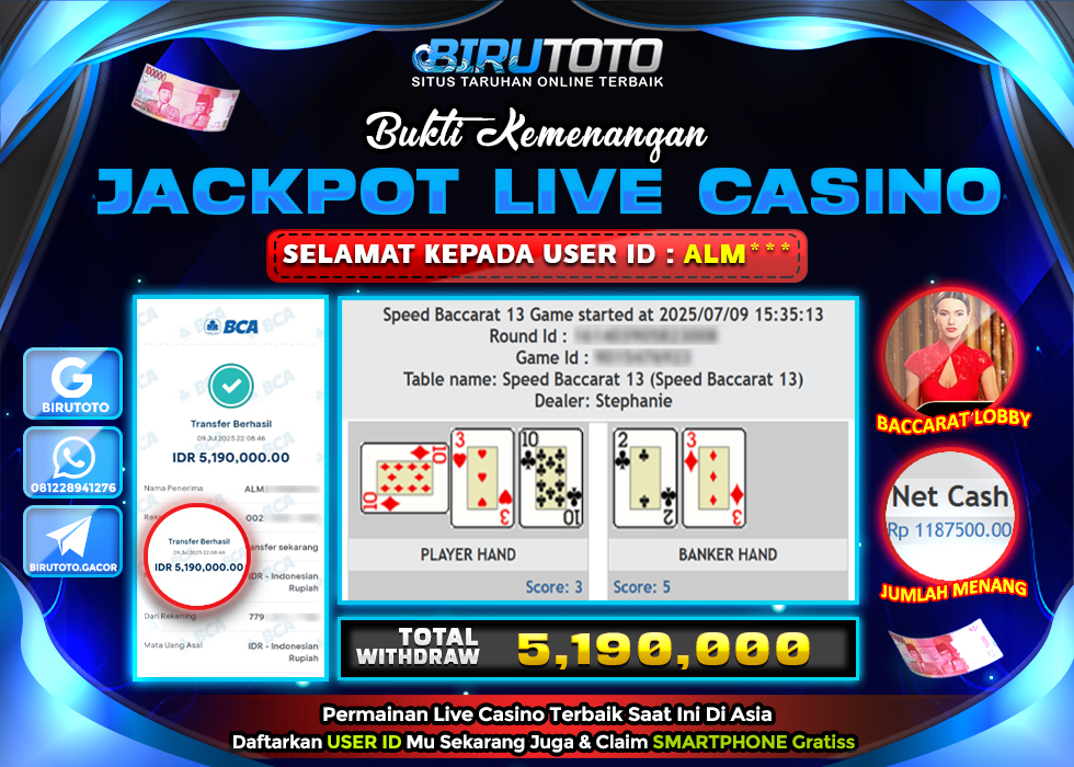 Selamat Kepada Member BIRUTOTO JU**** Telah Jackpot Di LIVE CASINO BACCARAT
