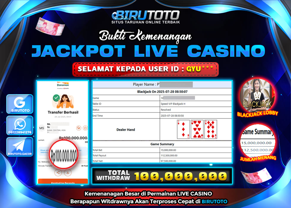 Selamat Kepada Member BIRUTOTO DI***8 Telah Jackpot Di LIVE CASINO SPA