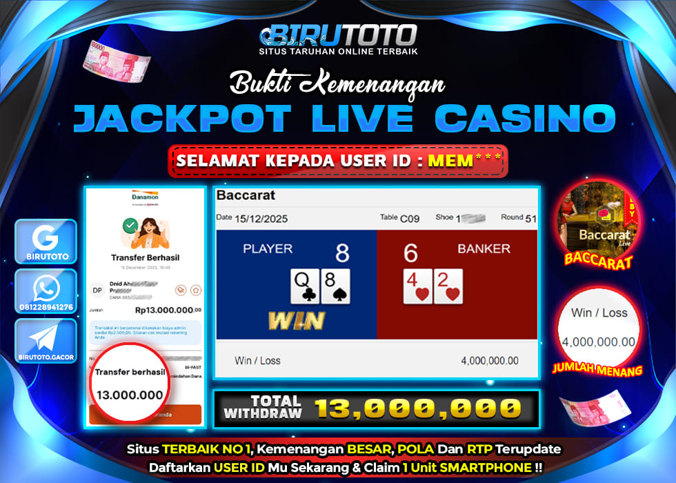 Selamat Kepada Member BIRUTOTO ME**** Telah Jackpot Di LIVE CASINO BACCARAT CLASSIC