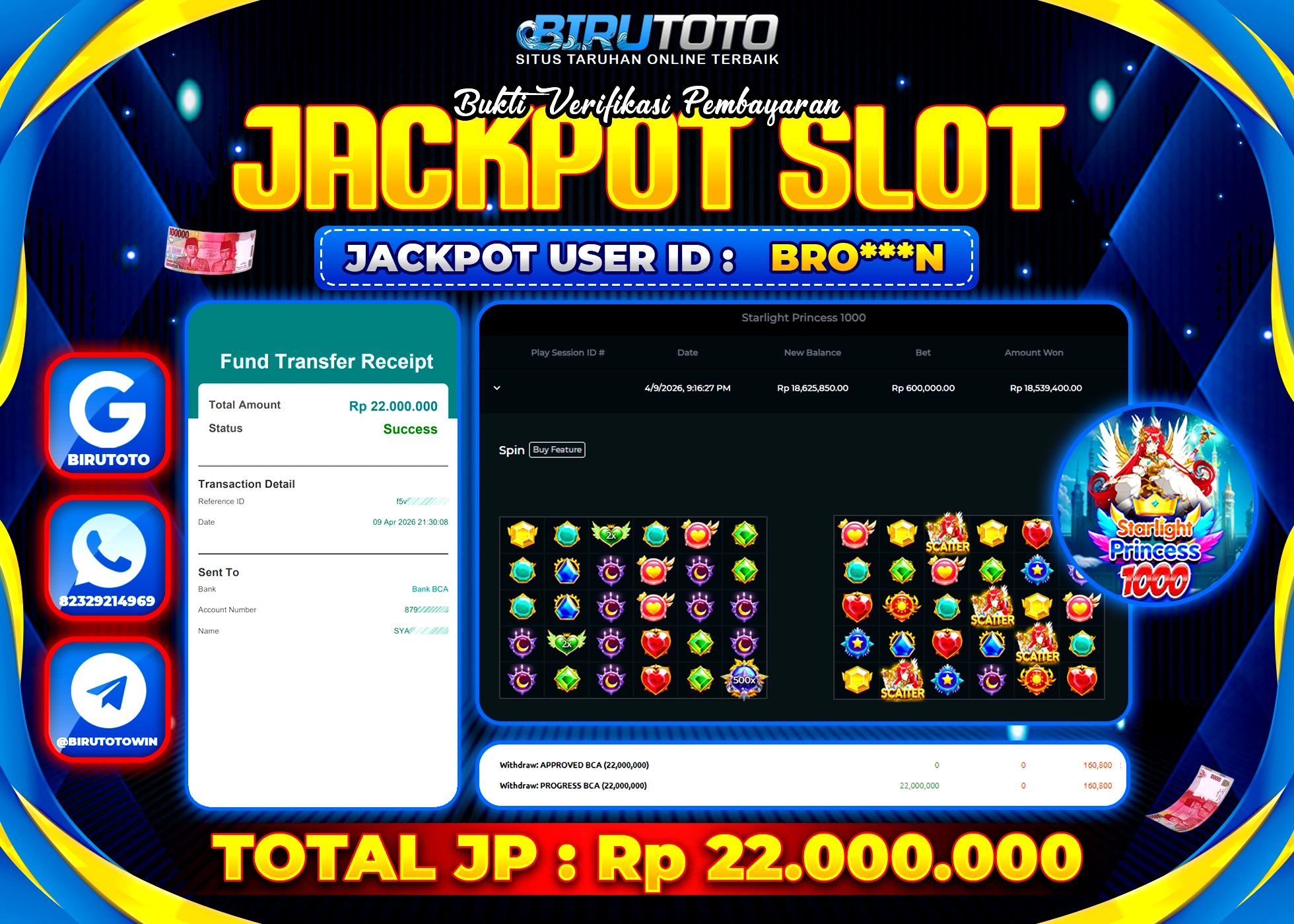 BIRUTOTO JACKPOT SLOT STARLIGHT PRINCES 1000 Rp.22.000.000 LUNAS