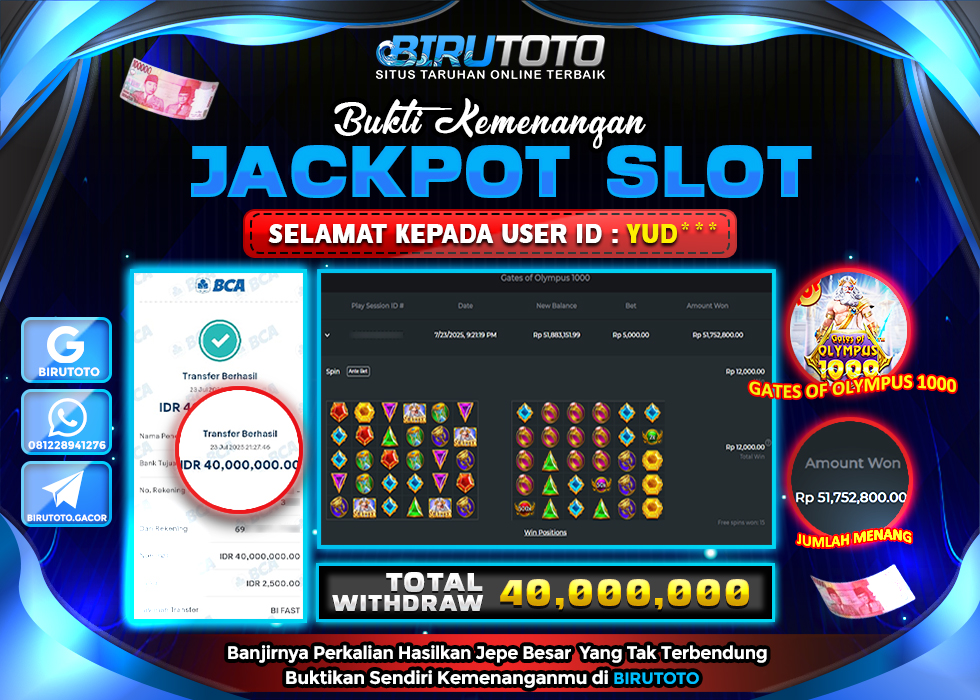 BIRUTOTO JACKPOT SLOT GATES OF OLYMPUS 1000 Rp.40.000.000 LUNAS