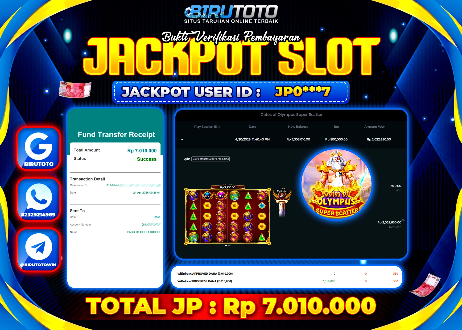 BIRUTOTO JACKPOT SLOT GATES OF OLYMPUS SUPER SCATTER Rp.7.010.000 LUNAS
