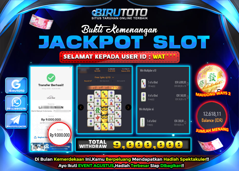 Selamat Kepada Member BIRUTOTO WA**** Telah Jackpot Di SLOT MAHJONG WAYS 2