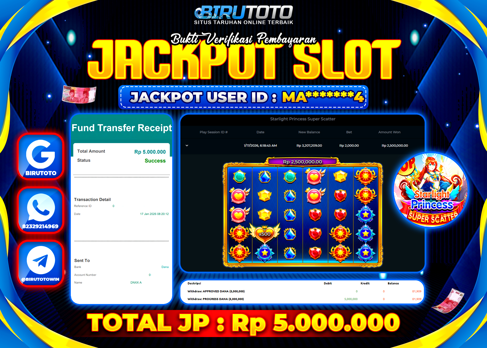 BIRUTOTO JACKPOT SLOT STARLIGHT PRINCES SUPER SCATTER Rp.5.000.000 LUNAS