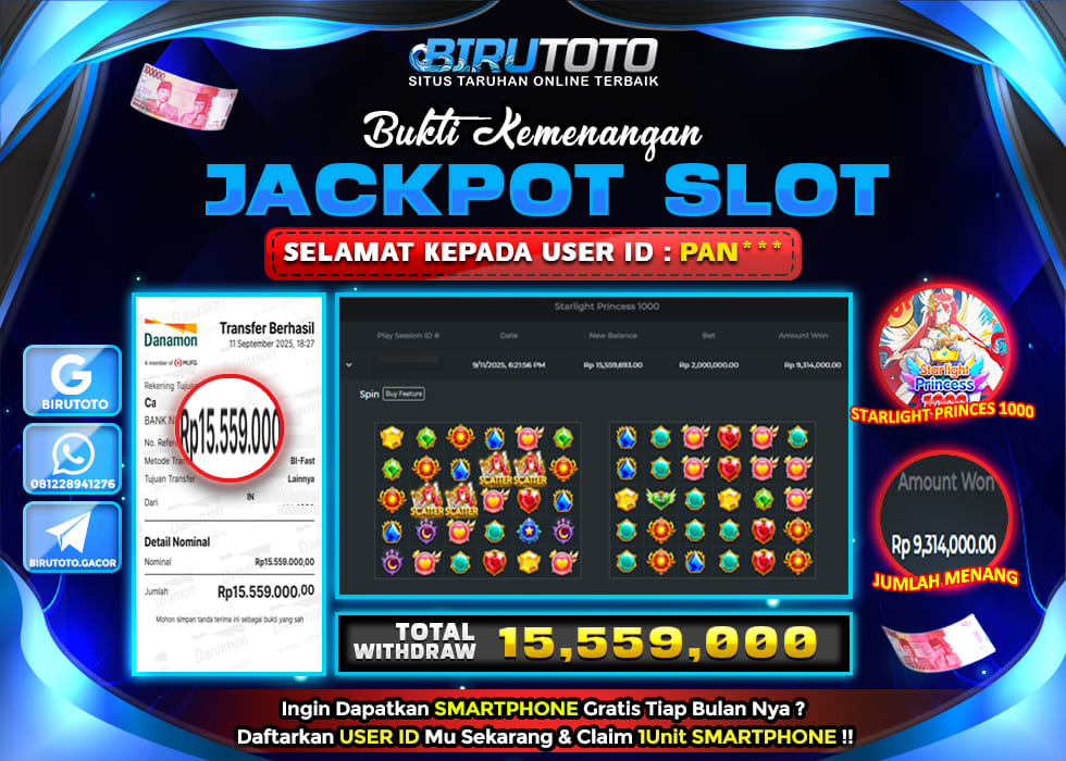 BIRUTOTO JACKPOT SLOT STARLIGHT PRINCESS 1000 Rp.15.559.000 LUNAS