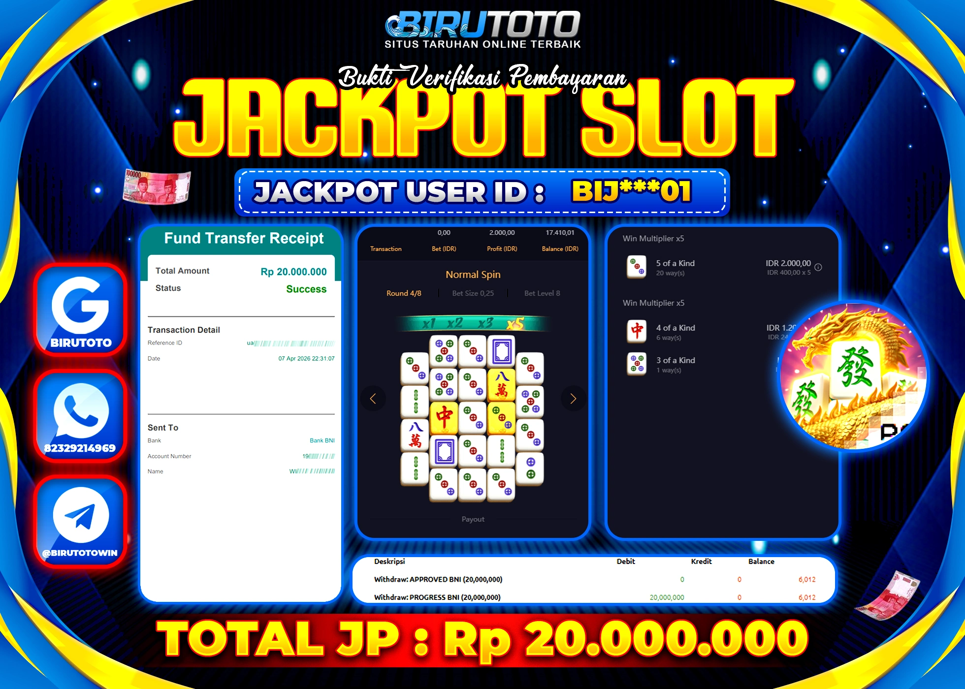 BIRUTOTO JACKPOT SLOT MAHJONG WAYS 2 Rp.20.000.000 LUNAS