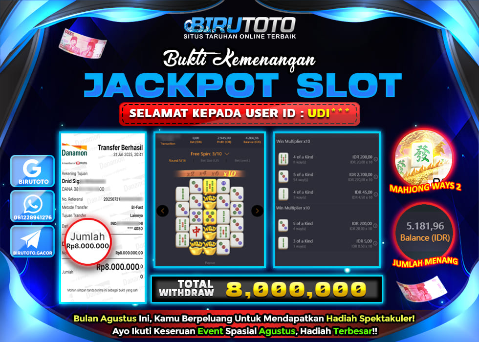 BIRUTOTO JACKPOT SLOT MAHJONG WINS 2 Rp.25.000.000 LUNAS
