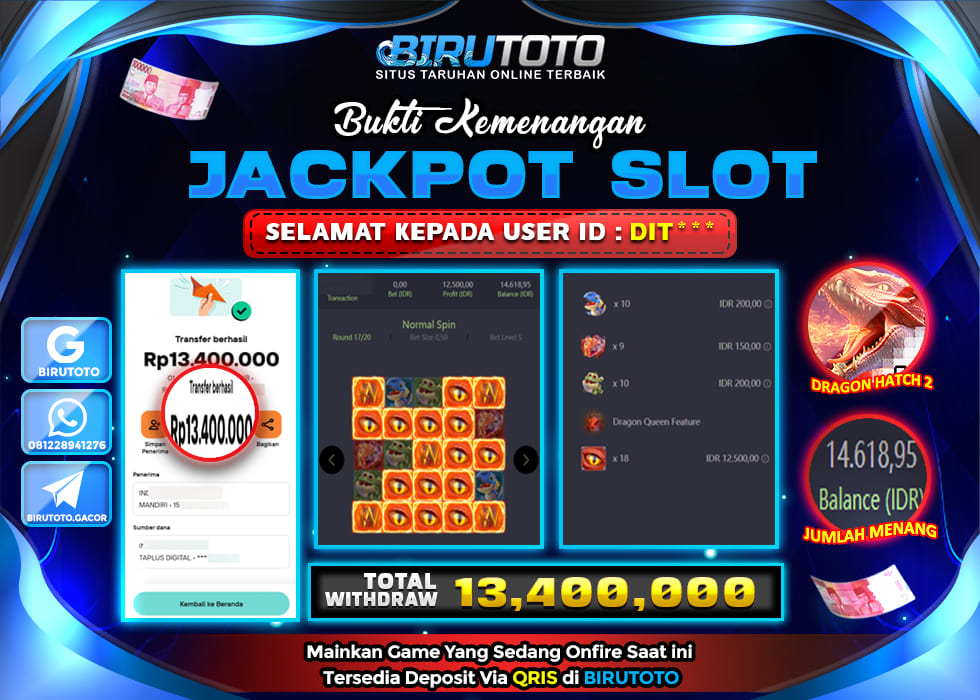 Selamat Kepada Member BIRUTOTO DI**** Telah Jackpot Di SLOT DRAGON HATCH 2
