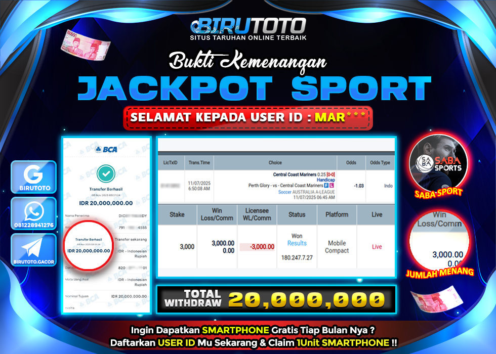 BIRUTOTO JACKPOT SABA SPORTS Rp.20.000.000 LUNAS