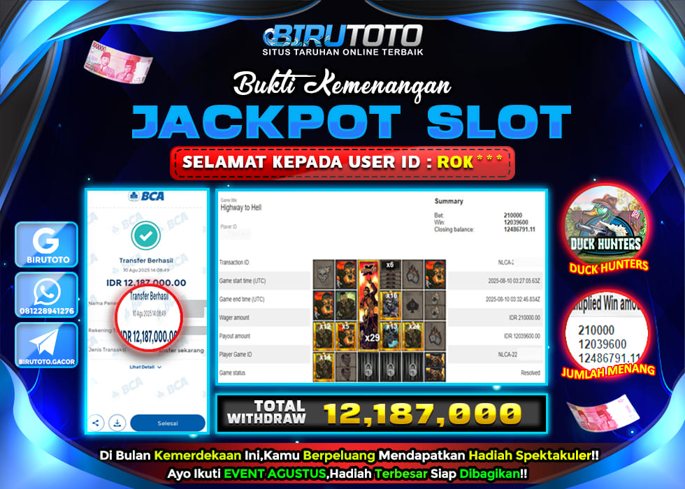 BIRUTOTO JACKPOT SLOT DUCK HUNTERS Rp.12.187.000 LUNAS