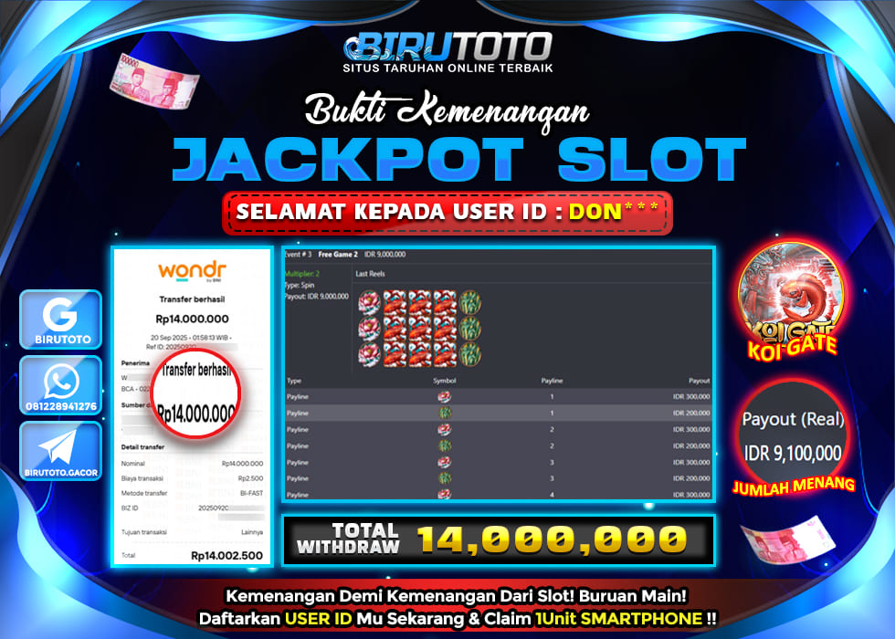 BIRUTOTO JACKPOT SLOT KOI GATE Rp.14.000.000 LUNAS