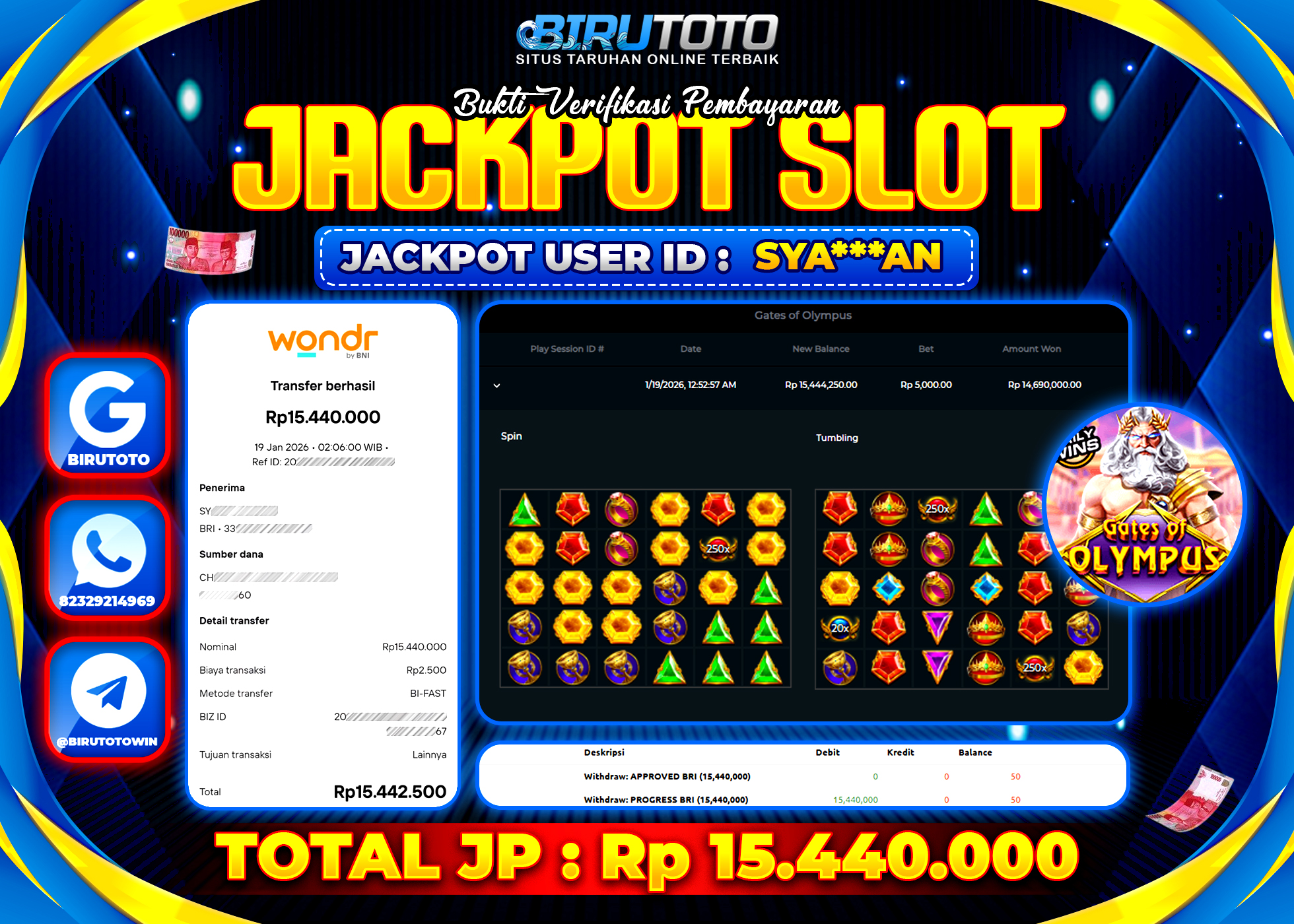 Selamat Kepada Member BIRUTOTO SYA***AN Telah Jackpot Di SLOT GATES OF OLYMPUS