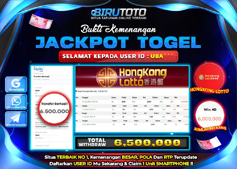 BIRUTOTO JACKPOT TOGEL HONGKONG LOTTO Rp.6.500.000 LUNAS