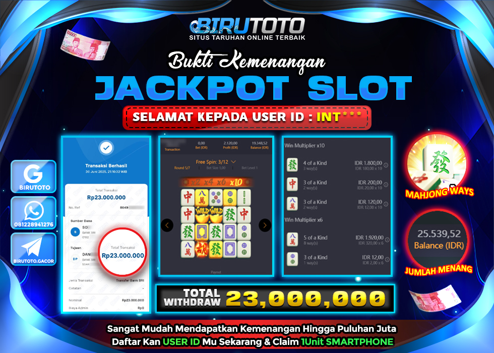 BIRUTOTO JACKPOT SLOT MAHJONG WAYS Rp.23.000.000 LUNAS