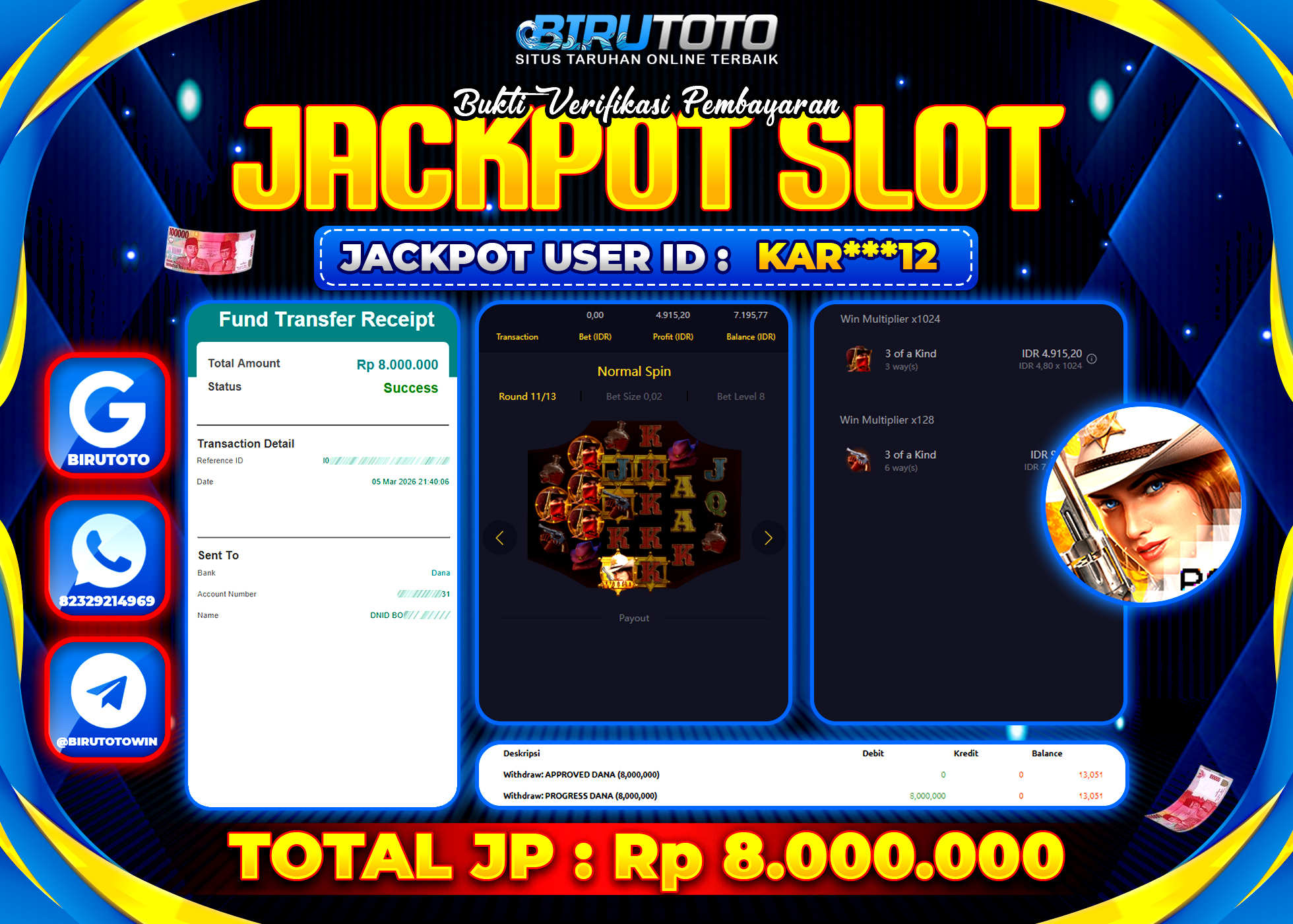 Selamat Kepada Member BIRUTOTO KAR***12 Telah Jackpot Di SLOT WILD BOUNTY SHOWDOWN
