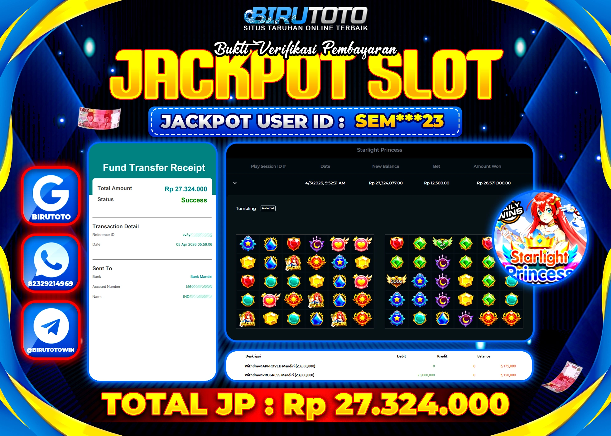 Selamat Kepada Member BIRUTOTO SEM***23 Telah Jackpot Di SLOT STARLIGHT PRINCES
