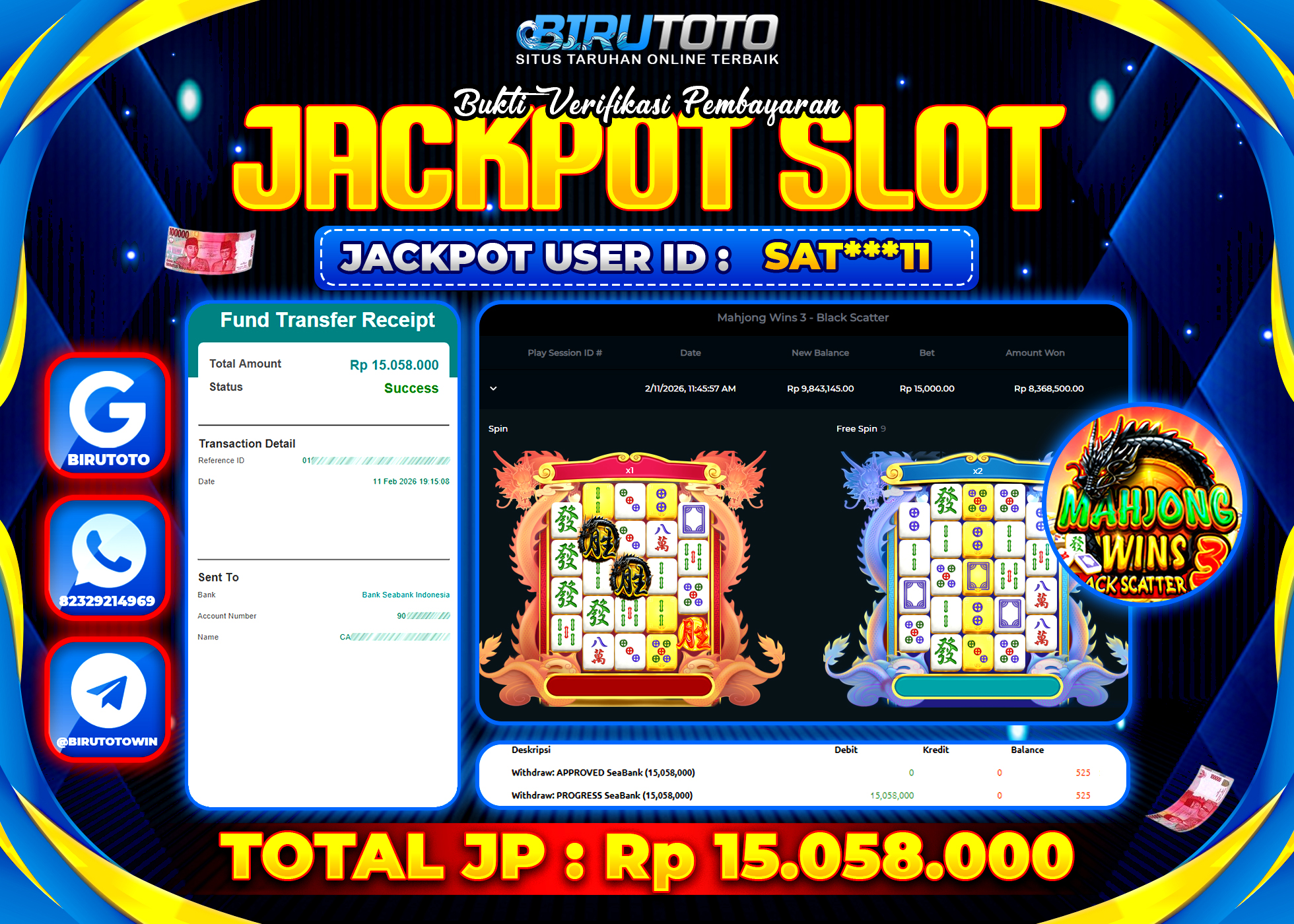 BIRUTOTO JACKPOT SLOT MAHJONG WINS 3 BLACK SCATTER Rp.15.058.000 LUNAS
